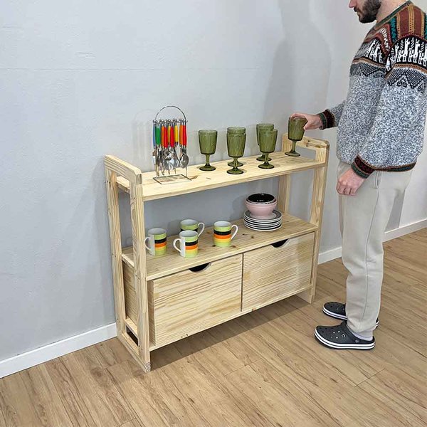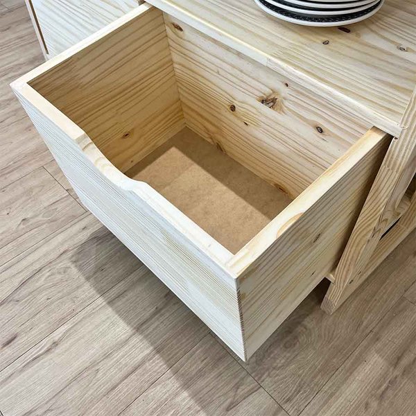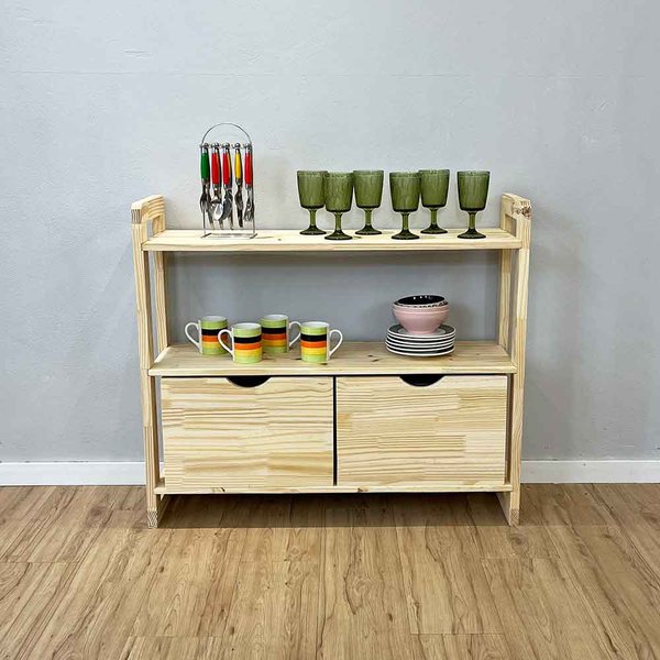 Aparador de Madeira Linea, a peça perfeita para transformar seu espaço com elegância e funcionalidade. Este aparador é ideal para quem busca um móvel versátil, que combina perfeitamente com diferentes estilos de decoração, desde o clássico ao contemporâneo. A madeira de pinus confere durabilidade e uma estética natural, ideal para quem busca um toque aconchegante em sua casa. Conta com 2 gavetas lindas feitas de madeira pinus e fundo em chapa de MDF de 4mm, resistente e com design rústico.