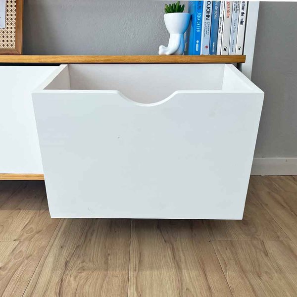 A nossa proposta é DIY, onde você mesmo monta o produto. Mas não se preocupe, a montagem é super prática e intuitiva, e o móvel é enviado semi montado, ou seja, é preciso de uma chave Philips para parafusar a madeira, viu como é simples?