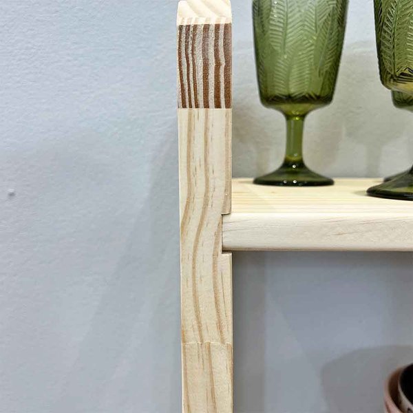 Feita em madeira de pinus maciça com acabamento em selador, ou verniz quando selecionado na opção de PERSONALIZE ESTE PRODUTO.
