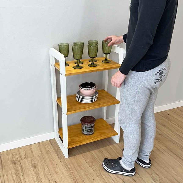 A nossa proposta é DIY, onde você mesmo monta o produto. Mas não se preocupe, a montagem é super prática e intuitiva, e o móvel é enviado semi montado, ou seja, é preciso de uma chave Philips para parafusar a madeira, viu como é simples?