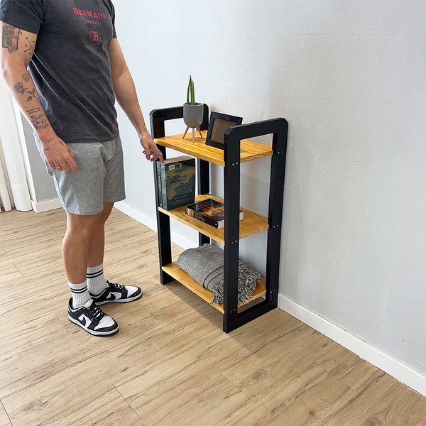 A nossa proposta é DIY, onde você mesmo monta o produto. Mas não se preocupe, a montagem é super prática e intuitiva, e o móvel é enviado semi montado, ou seja, é preciso de uma chave Philips para parafusar a madeira, viu como é simples?