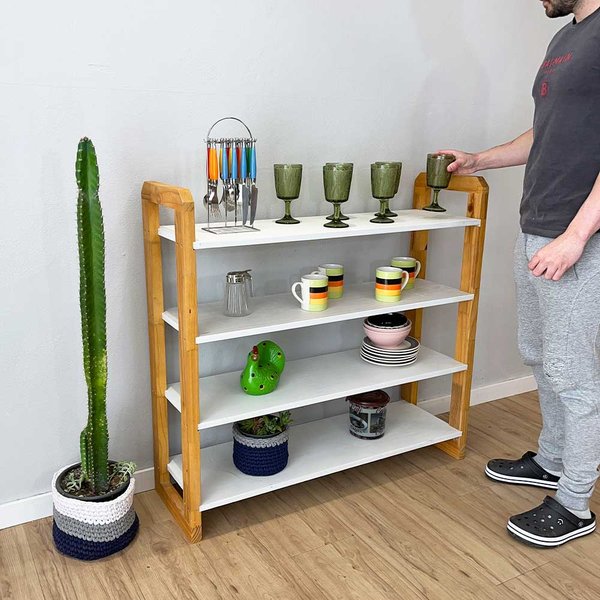 A nossa proposta é DIY, onde você mesmo monta o produto. Mas não se preocupe, a montagem é super prática e intuitiva, e o móvel é enviado semi montado, ou seja, é preciso de uma chave Philips para parafusar a madeira, viu como é simples?