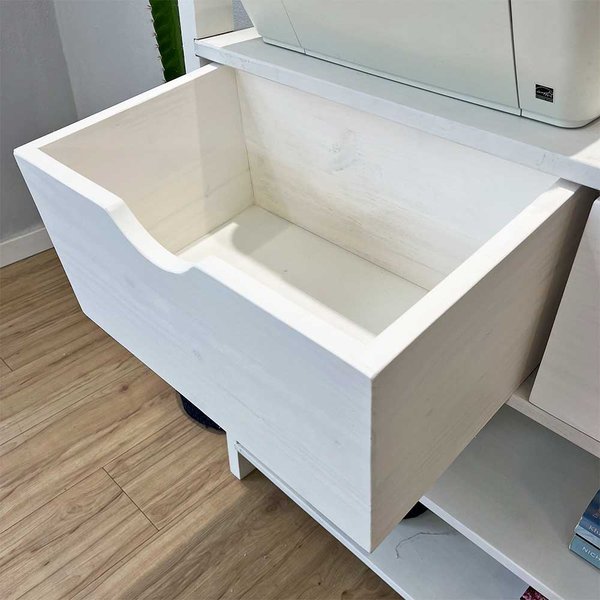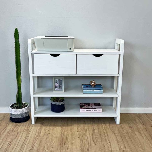 Aparador de Madeira Linea, a peça perfeita para transformar seu espaço com elegância e funcionalidade. Este aparador é ideal para quem busca um móvel versátil, que combina perfeitamente com diferentes estilos de decoração, desde o clássico ao contemporâneo. A madeira de pinus confere durabilidade e uma estética natural, ideal para quem busca um toque aconchegante em sua casa. Conta com 2 gavetas lindas feitas de madeira pinus e fundo em chapa de MDF de 4mm, resistente e com design rústico. A pintura branca do móvel não é laqueada, então ela vai aparecer a textura da madeira pinus, isso traz um charme descolado à peça.
