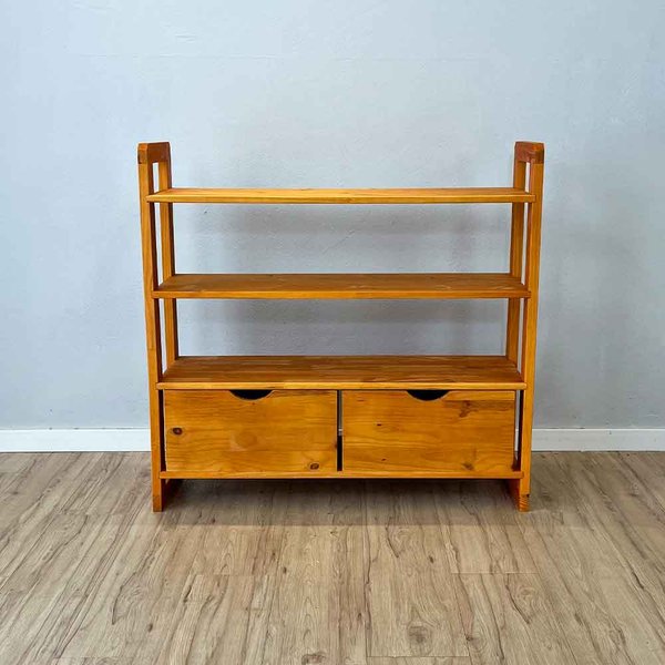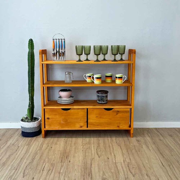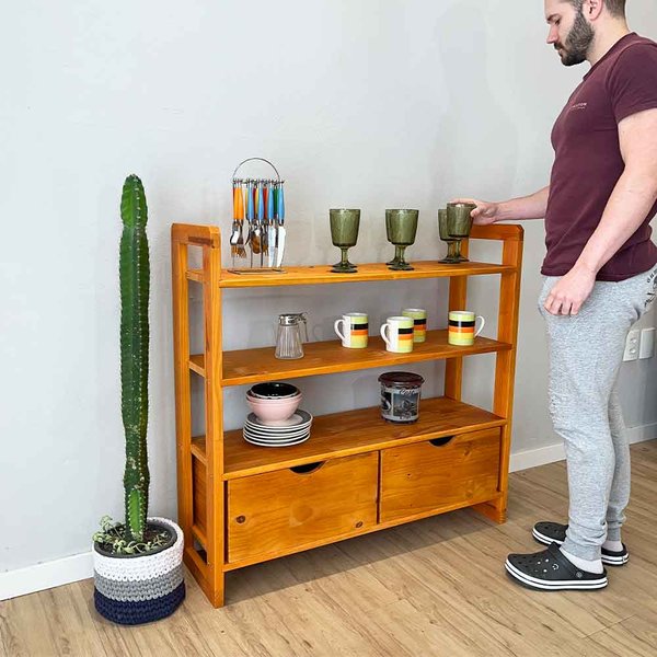 Aparador de Madeira Pinus Linea de 4 Prateleiras Ample com 2 Gavetas Carvalho