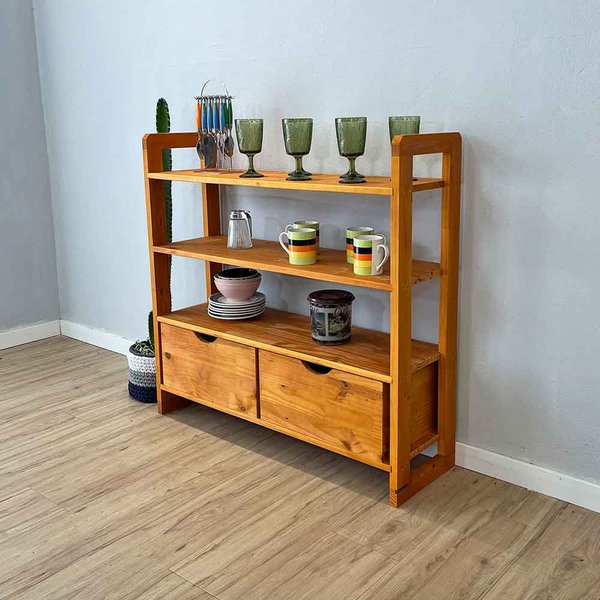 Adicione funcionalidade e charme ao seu ambiente com o aparador de madeira pinus, um móvel versátil que combina 4 prateleiras amplas e gavetas espaçosas para oferecer praticidade e organização. Ideal para guardar objetos pequenos e exibir itens decorativos, este aparador é perfeito para complementar qualquer espaço da sua casa.