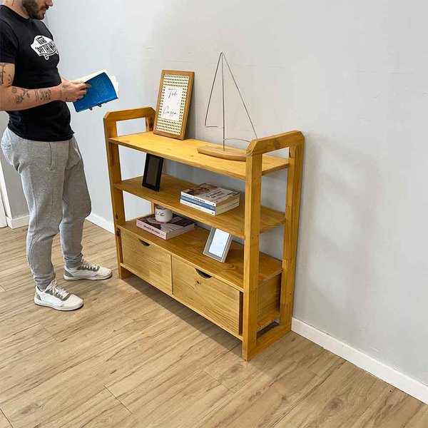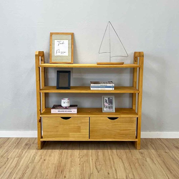 Adicione funcionalidade e charme ao seu ambiente com o aparador de madeira pinus, um móvel versátil que combina 4 prateleiras amplas e gavetas espaçosas para oferecer praticidade e organização. Ideal para guardar objetos pequenos e exibir itens decorativos, este aparador é perfeito para complementar qualquer espaço da sua casa.