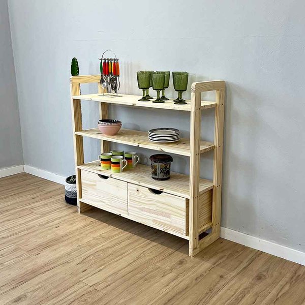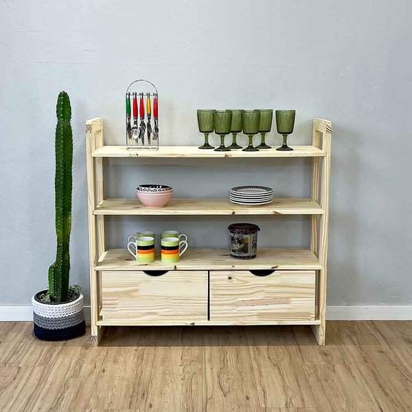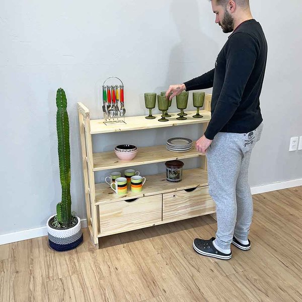 Adicione funcionalidade e charme ao seu ambiente com o aparador de madeira pinus, um móvel versátil que combina 4 prateleiras amplas e gavetas espaçosas para oferecer praticidade e organização. Ideal para guardar objetos pequenos e exibir itens decorativos, este aparador é perfeito para complementar qualquer espaço da sua casa.