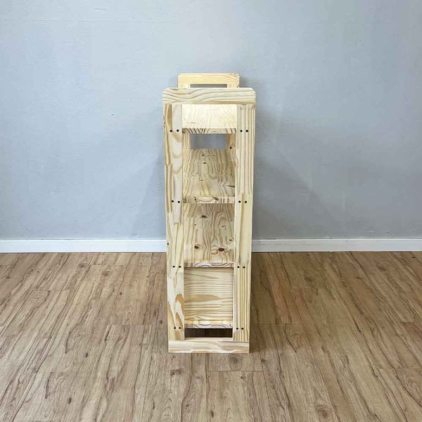 Feita em madeira de pinus maciça com acabamento em selador, ou verniz quando selecionado na opção de PERSONALIZE ESTE PRODUTO.