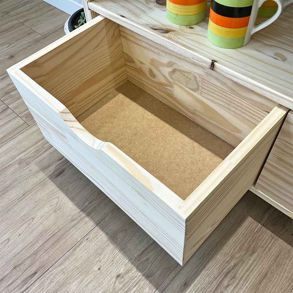 Aparador de Madeira Linea, a peça perfeita para transformar seu espaço com elegância e funcionalidade. Este aparador é ideal para quem busca um móvel versátil, que combina perfeitamente com diferentes estilos de decoração, desde o clássico ao contemporâneo. A madeira de pinus confere durabilidade e uma estética natural, ideal para quem busca um toque aconchegante em sua casa. Conta com 2 gavetas lindas feitas de madeira pinus e fundo em chapa de MDF de 4mm, resistente e com design rústico.