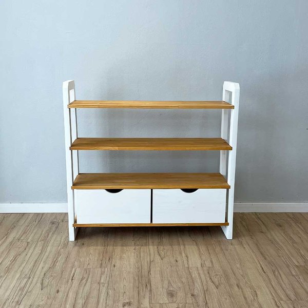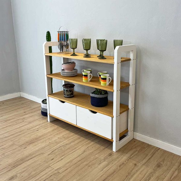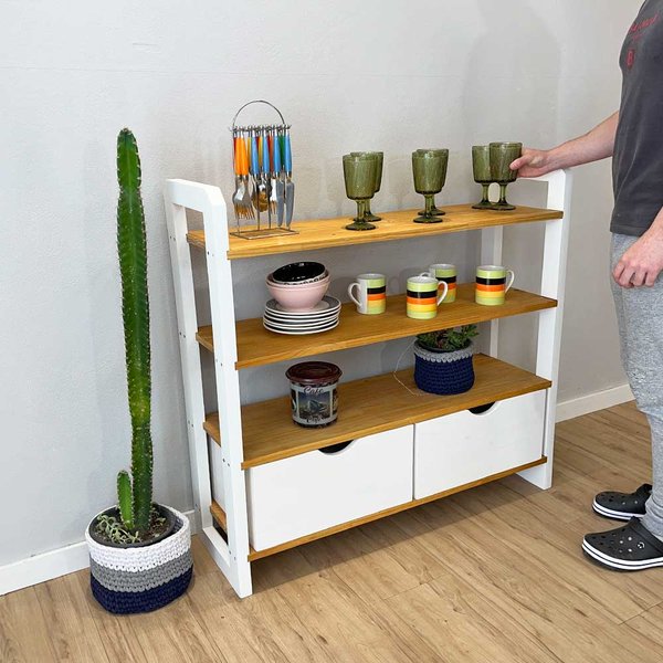 Adicione funcionalidade e charme ao seu ambiente com o aparador de madeira pinus, um móvel versátil que combina 4 prateleiras amplas e gavetas espaçosas para oferecer praticidade e organização. Ideal para guardar objetos pequenos e exibir itens decorativos, este aparador é perfeito para complementar qualquer espaço da sua casa.