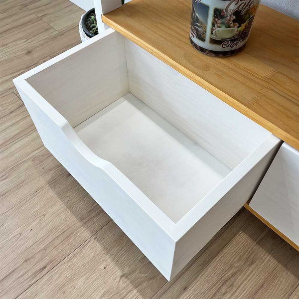Aparador de Madeira Linea, a peça perfeita para transformar seu espaço com elegância e funcionalidade. Este aparador é ideal para quem busca um móvel versátil, que combina perfeitamente com diferentes estilos de decoração, desde o clássico ao contemporâneo. A madeira de pinus confere durabilidade e uma estética natural, ideal para quem busca um toque aconchegante em sua casa. Conta com 2 gavetas lindas feitas de madeira pinus e fundo em chapa de MDF de 4mm, resistente e com design rústico.