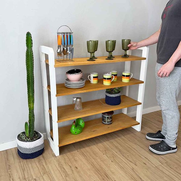 A nossa proposta é DIY, onde você mesmo monta o produto. Mas não se preocupe, a montagem é super prática e intuitiva, e o móvel é enviado semi montado, ou seja, é preciso de uma chave Philips para parafusar a madeira, viu como é simples?