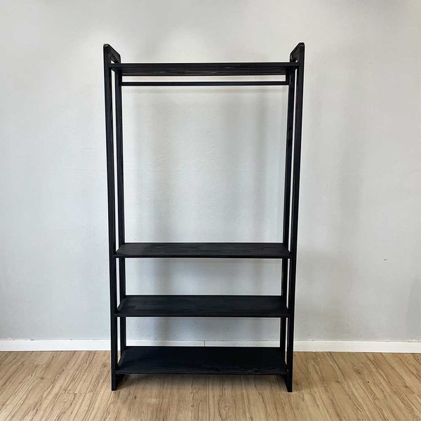 Arara de Roupas Linea Ample: Madeira Maciça Total Black e Cabideiro de Ferro Industrial