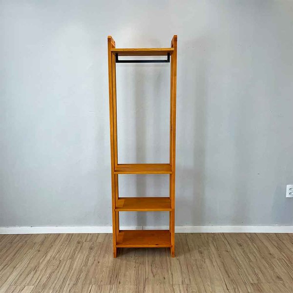 Organize suas roupas com estilo e praticidade usando a arara de roupas 100% em madeira pinus, perfeita para quem busca funcionalidade com um toque natural e elegante. Projetada com um cabideiro na parte superior, ela é ideal para pendurar roupas, enquanto as 3 prateleiras inferiores oferecem espaço para armazenar roupas dobradas, sapatos ou acessórios.