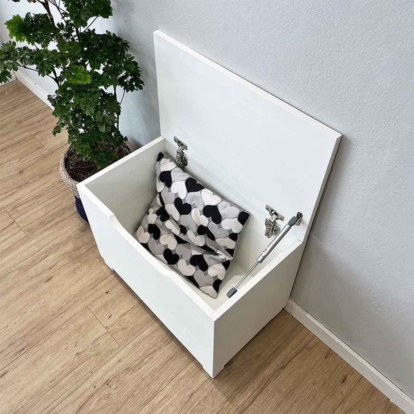 Transforme seu ambiente com o Baú Banco de Madeira Pinus Grande na cor natural. Com 90 cm de largura, 45 cm de altura e 35 cm de profundidade, ele é ideal para quem busca praticidade sem abrir mão do design. Produzido em madeira pinus de alta qualidade, o baú funciona também como banco, sendo perfeito para o quarto, escritório ou hall de entrada. A tampa com dobradiças possui trava que mantém aberta com segurança, além de amortecedor com freio, garantindo fechamento suave e evitando acidentes.