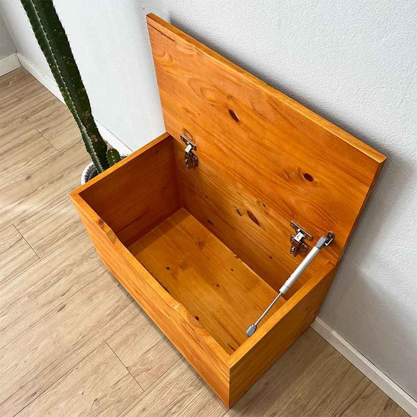 Baú Banco de Madeira Pinus Grande Natural – Organização com charme e funcionalidade