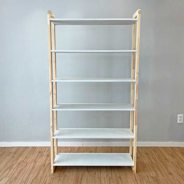 A Estante 6 Prateleiras de Madeira Pinus Linea Ample Branco e Natural combina organização funcional com design rústico e moderno, aproveitando sua altura para acomodar livros, objetos decorativos e itens do dia a dia sem ocupar muito espaço no piso. Produzida em madeira pinus de alta qualidade com acabamento natural e branco em selador, essa estante é ideal para salas de estar, quarto, escritório ou home office, agregando charme, praticidade e personalidade ao ambiente. Aproveite e adicione vasos e cachepôs para compor clicando aqui!