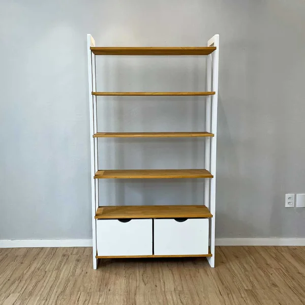 Estante Linea Ample 6 Prateleiras e 2 Gavetas: Estilo Bicolor em Branco e Nozes