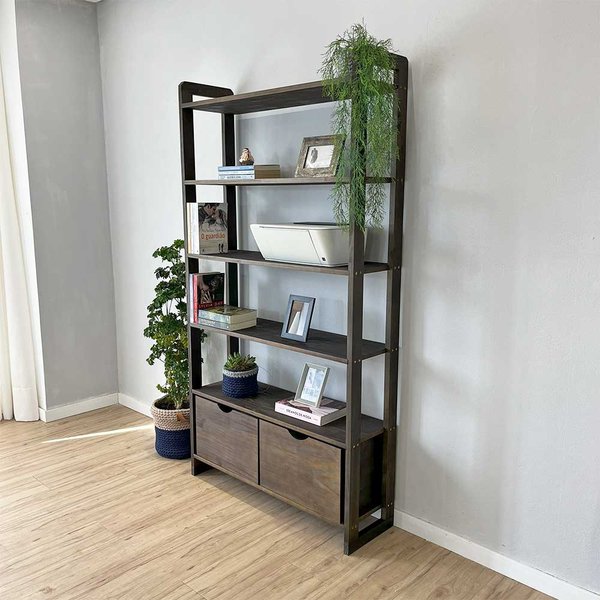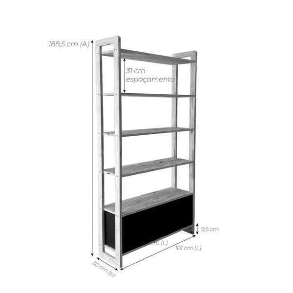 Organize e decore com estilo! A Estante 6 Prateleiras de Madeira Pinus Linea Ample é a escolha perfeita para quem busca um móvel versátil, funcional e cheio de personalidade. Com estrutura robusta e design moderno, ela combina o acabamento natural da madeira pinus com detalhes em preto, criando um visual industrial sofisticado para qualquer ambiente. Conta com 2 gavetas lindas feitas de madeira pinus e fundo em chapa de MDF de 4mm, resistente e com design rústico.