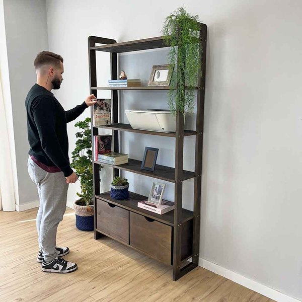 Ideal para salas, home offices, cozinhas ou quartos, essa estante conta com 6 prateleiras espaçosas para acomodar livros, objetos decorativos, louças ou o que mais precisar. Além disso, possui 2 gavetas amplas, proporcionando ainda mais praticidade para armazenar itens menores. Transforme seu espaço com a Estante Linea Ample e tenha um ambiente organizado e cheio de charme! Aproveite e adicione vasos e cachepôs para compor clicando aqui!