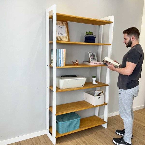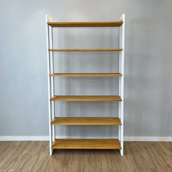 A Estante Linea Ample de Madeira Pinus é uma peça que alia organização e decoração em qualquer ambiente. Com 6 prateleiras resistentes, fabricadas em madeira de pinus de 1,8 cm de espessura nas prateleiras e 2,5cm nas laterais, e acabamento em selador, ela oferece charme e durabilidade. Sua cor nozes dá um toque rústico e moderno ao espaço. A pintura branca do móvel não é laqueada, então ela vai aparecer a textura da madeira pinus, isso traz um charme descolado à peça.