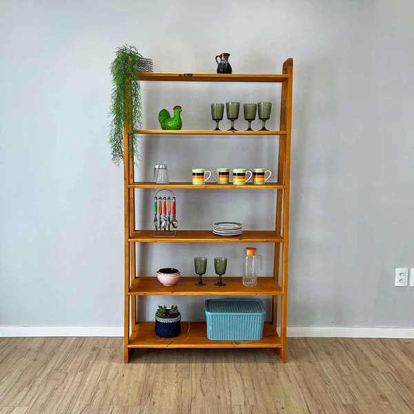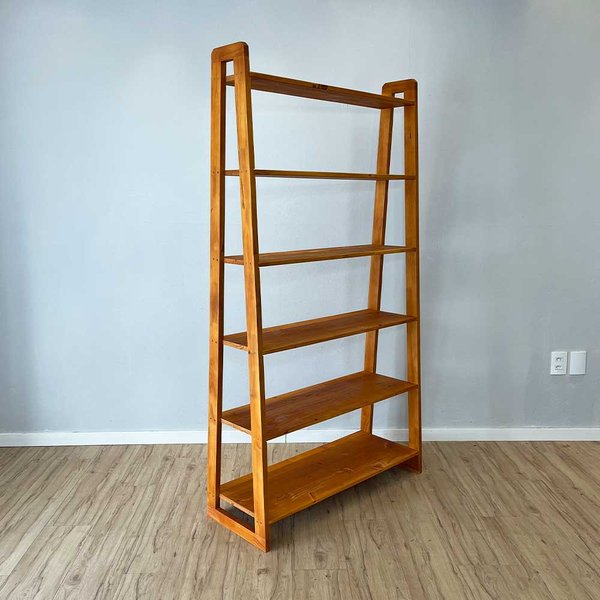 Estante de 6 Prateleiras de Madeira Pinus Linea Ample – Carvalho: Organização e Elegância em Cada Prateleira