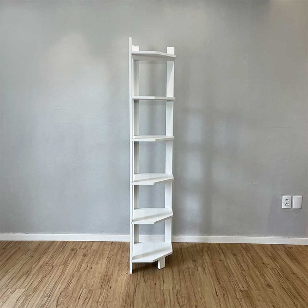 Estante de Canto Linea Branco: 6 Prateleiras em Madeira Maciça