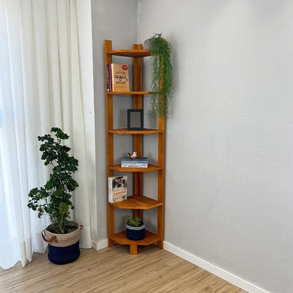 Estante de Canto de Madeira Pinus: 6 Prateleiras Linea Carvalho