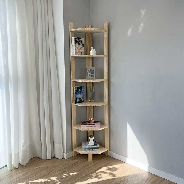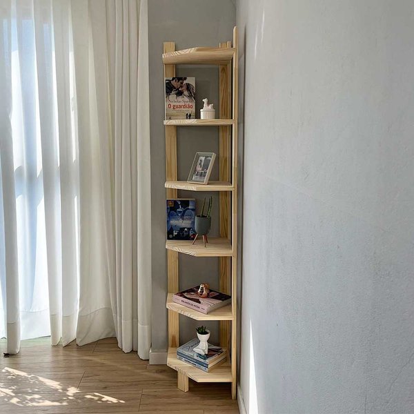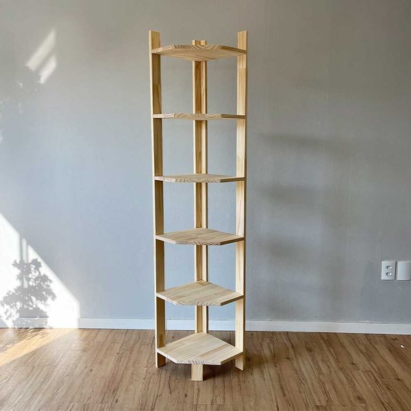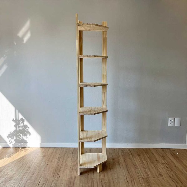 Estante de Canto Linea Natural: 6 Prateleiras em Madeira Maciça de Pinus