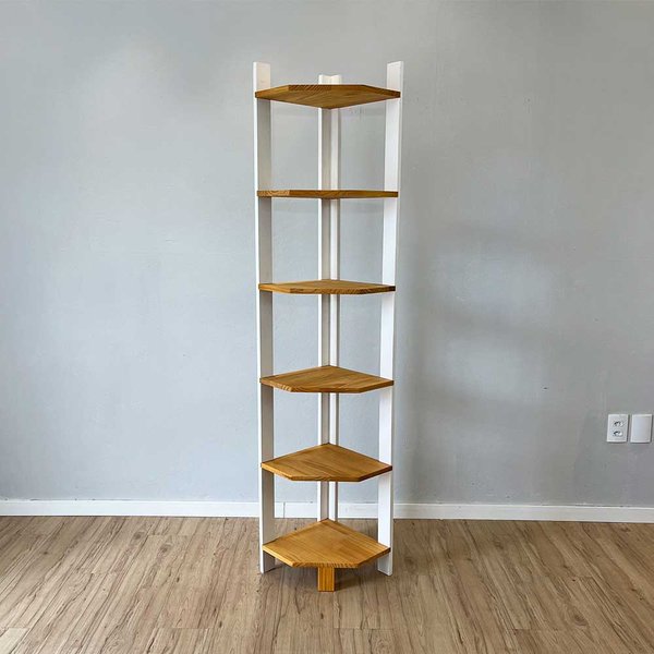 Estante de Canto Linea Nozes e Branco: 6 Prateleiras em Madeira Maciça