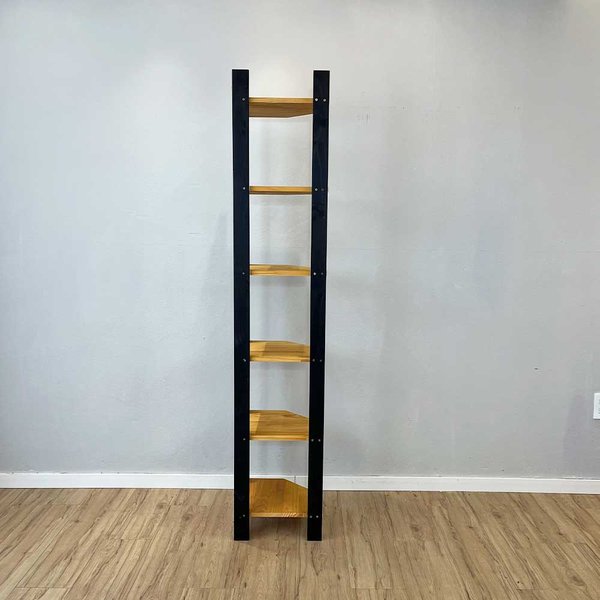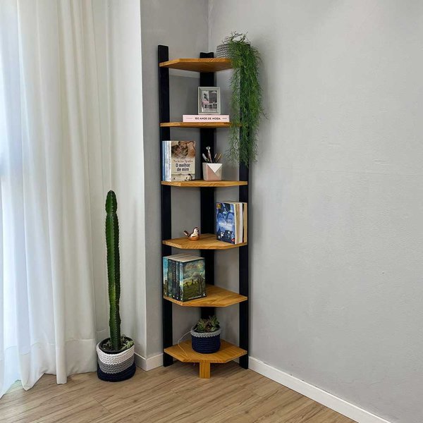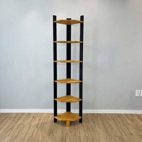 Estante de Canto Linea Nozes e Preto: 6 Prateleiras em Madeira Maciça