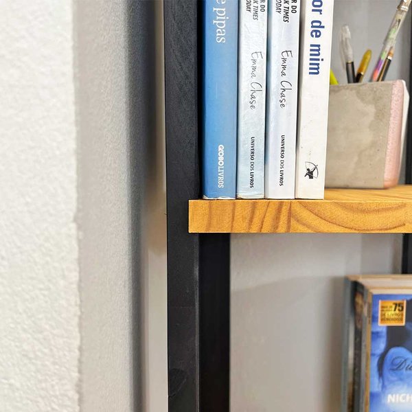 Devido à sua altura e formato Slim, recomendamos a fixação em pelo menos um dos lados da parede. Isso garante que a estante fique perfeitamente estável e segura contra esbarrões, especialmente em casas com crianças ou pets.