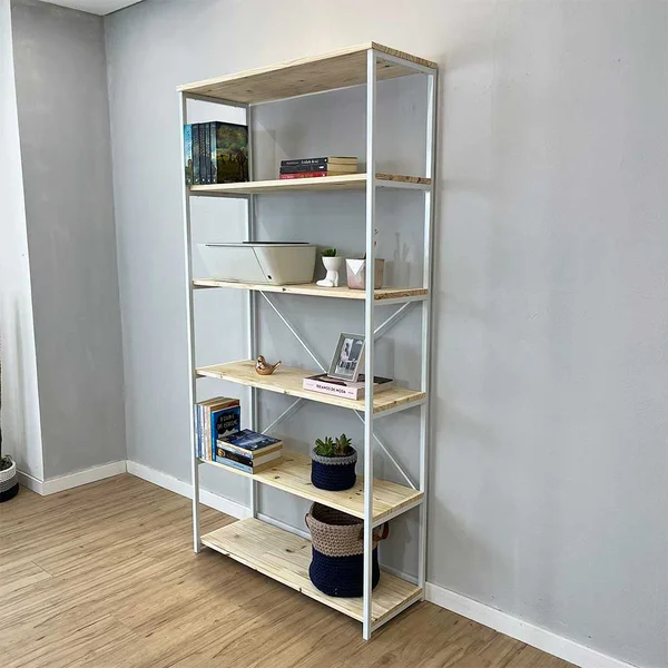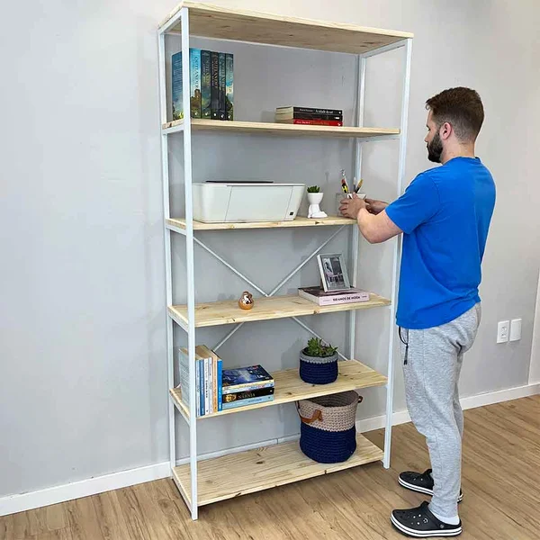 Sua estrutura em ferro tubo de 2 cm garante durabilidade e resistência, enquanto as prateleiras em madeira pinus maciça de 1,8 cm de espessura trazem um toque natural e acolhedor ao ambiente. Perfeita para salas de estar, escritórios, cozinhas ou qualquer outro cômodo, a estante se destaca pelo visual clean e moderno. Invista na Estante Style Ample e dê um upgrade no seu espaço com um móvel que combina estilo e praticidade. Adicione vasos e cachepôs clicando AQUI.
