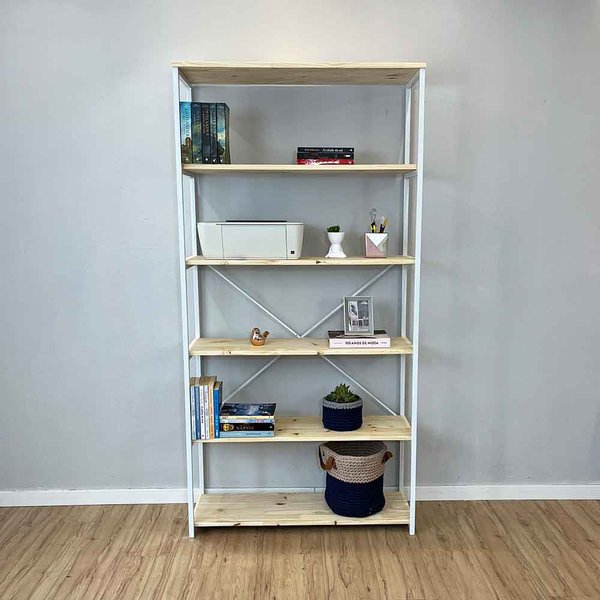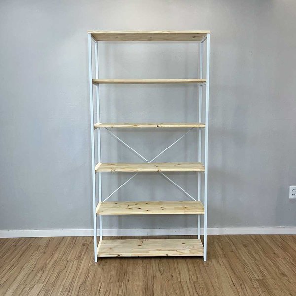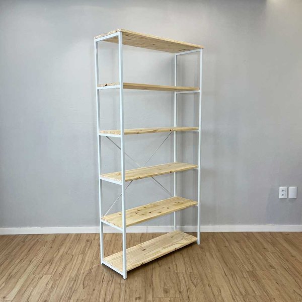 Organize e transforme seus espaços com a Estante Style Ample, um móvel que une funcionalidade e design industrial. Com 6 prateleiras espaçosas, esta peça é ideal para acomodar livros, objetos decorativos, plantas e muito mais. A pintura branca do móvel não é laqueada, então vai aparecer a textura da madeira pinus, isso traz um charme descolado à peça.