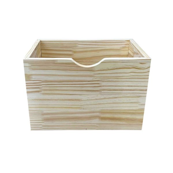 Feita em madeira de pinus maciça com acabamento em selador, ou verniz quando selecionado na opção de PERSONALIZE ESTE PRODUTO.