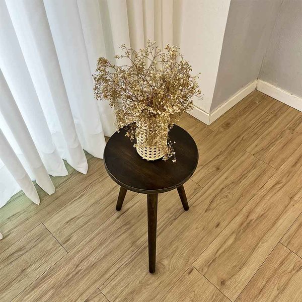 O design com pé palito de madeira evoca o estilo escandinavo e o movimento modernista de meados do século, conferindo um ar retrô e atemporal. A forma redonda das mesas suaviza os ambientes com linhas retas, criando um contraste harmonioso. Além disso, a madeira pinus adiciona um toque natural e acolhedor, combinando com diversas paletas de cores e texturas.