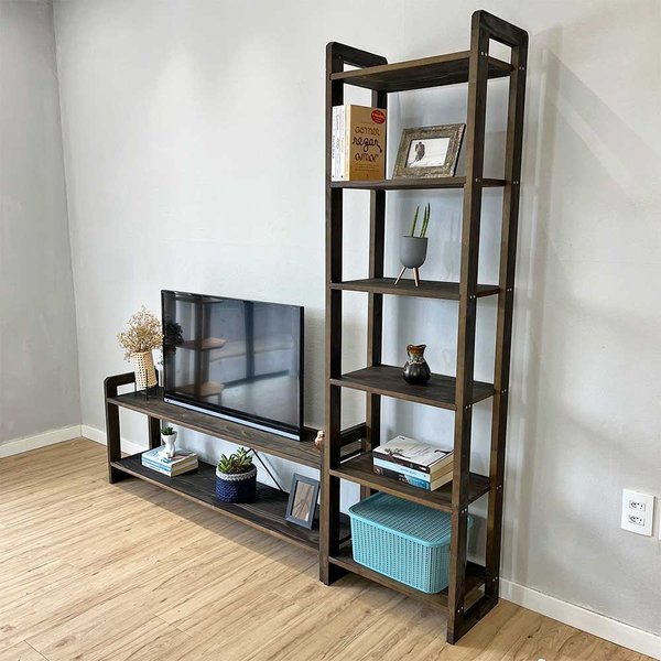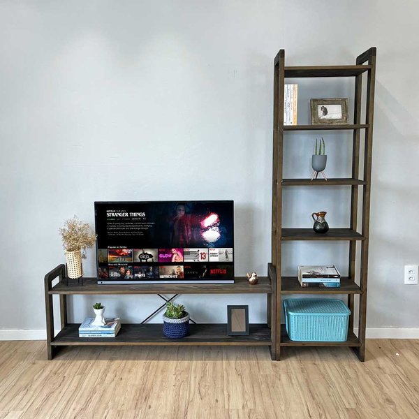 Imagine um móvel que não só acomoda sua TV, mas que também se destaca como o ponto focal da sua sala de estar. Apresentamos o nosso exclusivo Rack de TV com Estante de Madeira, a solução perfeita para quem busca estilo, funcionalidade e aconchego.