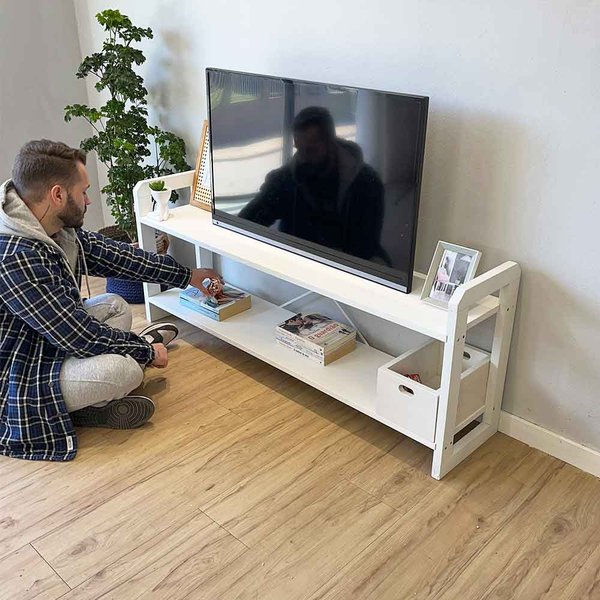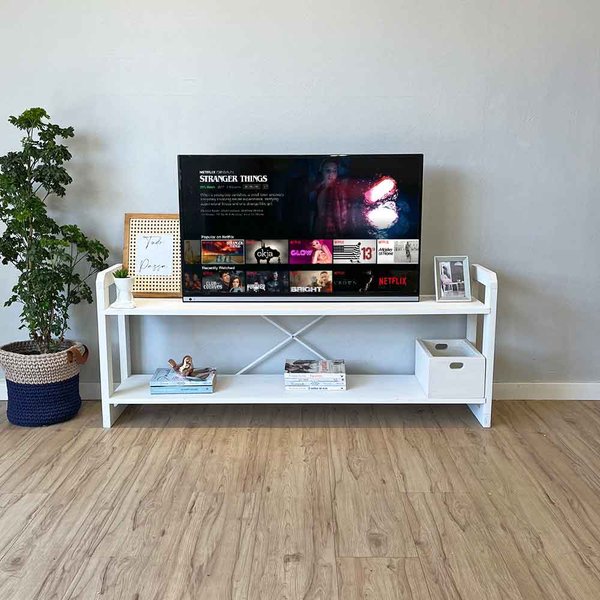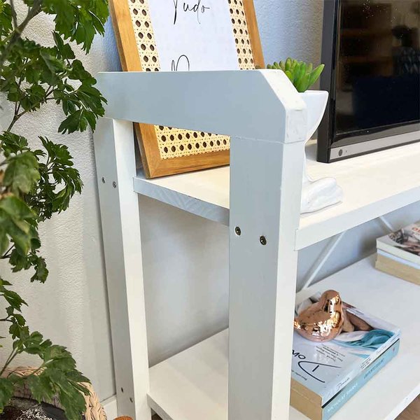 Transforme sua sala de estar com o elegante Rack de TV de Madeira Linea! Com um design moderno e clean, este rack é perfeito para quem busca funcionalidade e estilo. Suas prateleiras abertas oferecem espaço ideal para exibir seus eletrônicos e objetos decorativos, enquanto a madeira de alta qualidade garante durabilidade e beleza. Além disso, a sua estrutura leve facilita a organização do ambiente. Torne seu espaço mais aconchegante e sofisticado com o Rack de TV Linea! A pintura branca do móvel não é laqueada, então vai aparecer a textura da madeira pinus, isso traz um charme descolado à peça.