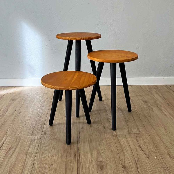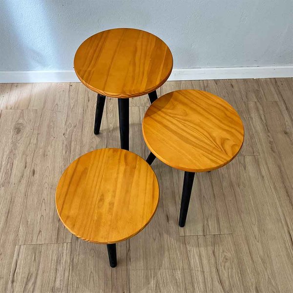 Perfeito para sua Sala! Trio de Mesas Lateral Redondas com Pé Palito de Madeira. Feitas em madeira pinus de alta qualidade com acabamento impecável, estas três mesas são a solução ideal para quem busca praticidade e um toque moderno. Use-as juntas como um conjunto de mesas de centro escalonadas, separe-as para servir como mesas de apoio ao lado de sofás ou poltronas, ou até mesmo como mesas laterais para quarto. O design leve e minimalista se integra facilmente a qualquer estilo, seja ele escandinavo, rústico ou contemporâneo. Otimize seu espaço e adicione funcionalidade com o design exclusivo da ArtFactory Design.