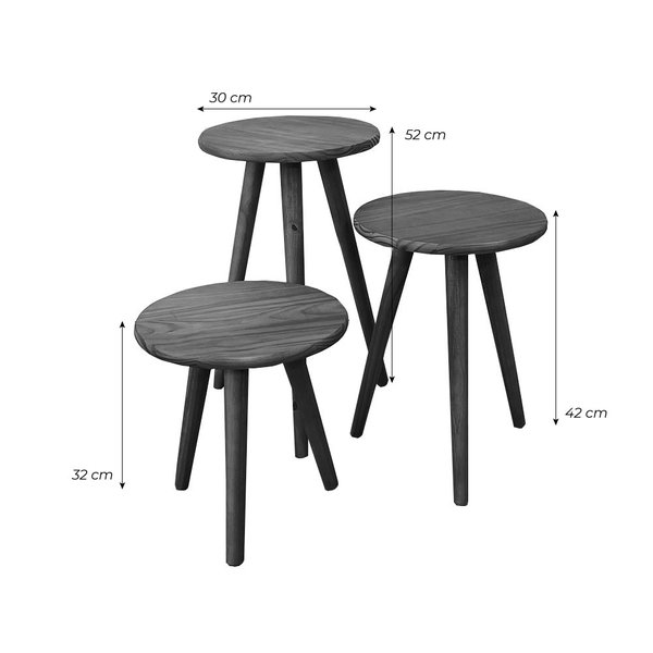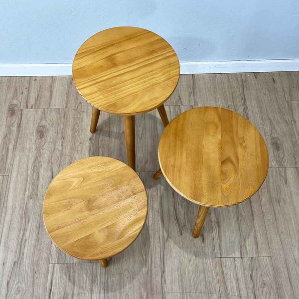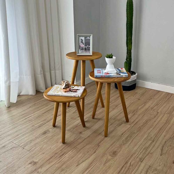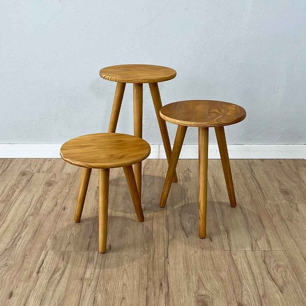 • 1 Trio de Mesas Lateral Redondas com Pé Palito de Madeira