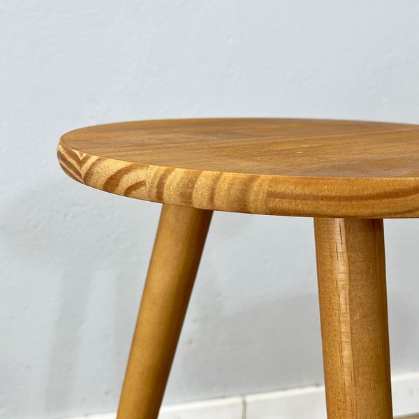 O design com pé palito de madeira evoca o estilo escandinavo e o movimento modernista de meados do século, conferindo um ar retrô e atemporal. A forma redonda das mesas suaviza os ambientes com linhas retas, criando um contraste harmonioso. Além disso, a madeira pinus adiciona um toque natural e acolhedor, combinando com diversas paletas de cores e texturas.