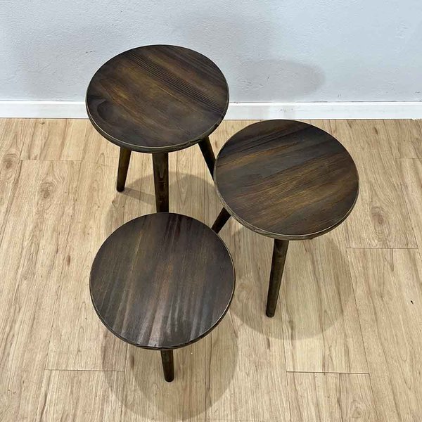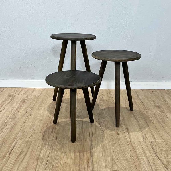 Perfeito para sua Sala! Trio de Mesas Lateral Redondas com Pé Palito de Madeira. Feitas em madeira pinus de alta qualidade com acabamento impecável, estas três mesas são a solução ideal para quem busca praticidade e um toque moderno. Use-as juntas como um conjunto de mesas de centro escalonadas, separe-as para servir como mesas de apoio ao lado de sofás ou poltronas, ou até mesmo como mesas laterais para quarto. O design leve e minimalista se integra facilmente a qualquer estilo, seja ele escandinavo, rústico ou contemporâneo. Otimize seu espaço e adicione funcionalidade com o design exclusivo da ArtFactory Design.
