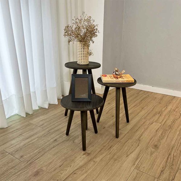 Como posso utilizar meu Trio de Mesas Lateral Redondas com Pé Palito de Madeira?